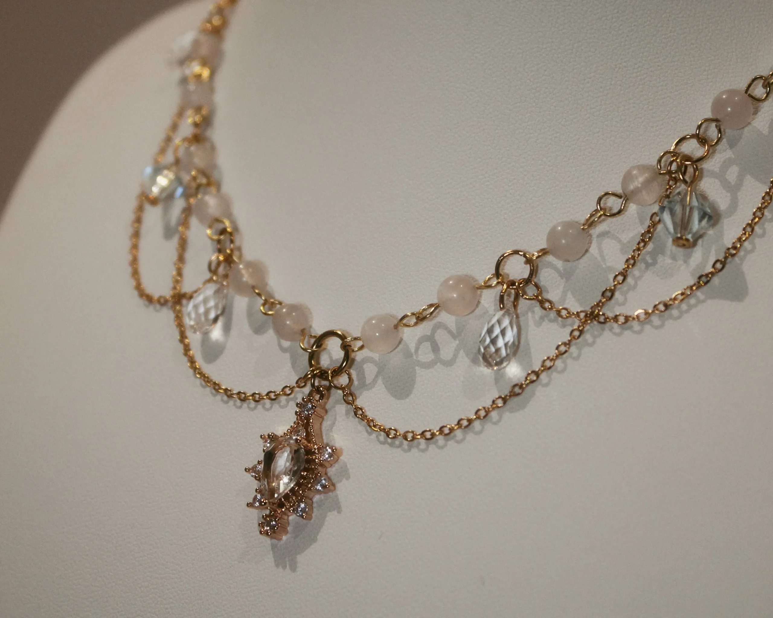 Pour protéger votre bijou, évitez le contact prolongé avec l’eau, la transpiration et les produits cosmétiques. Nettoyez les cristaux délicatement avec un chiffon microfibre pour retrouver leur éclat. Conservez votre collier dans un endroit sec pour le préserver.